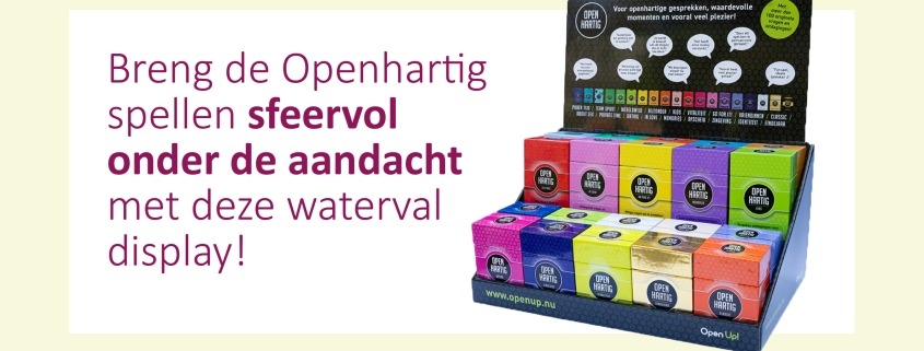 Onze nieuwe waterval display! Een overzichtelijk display waar 20 spellen in passen. Op dit moment hebben we 19 verschillende edities. Voor verschillende doelgroepen en met verschillende thema’s.