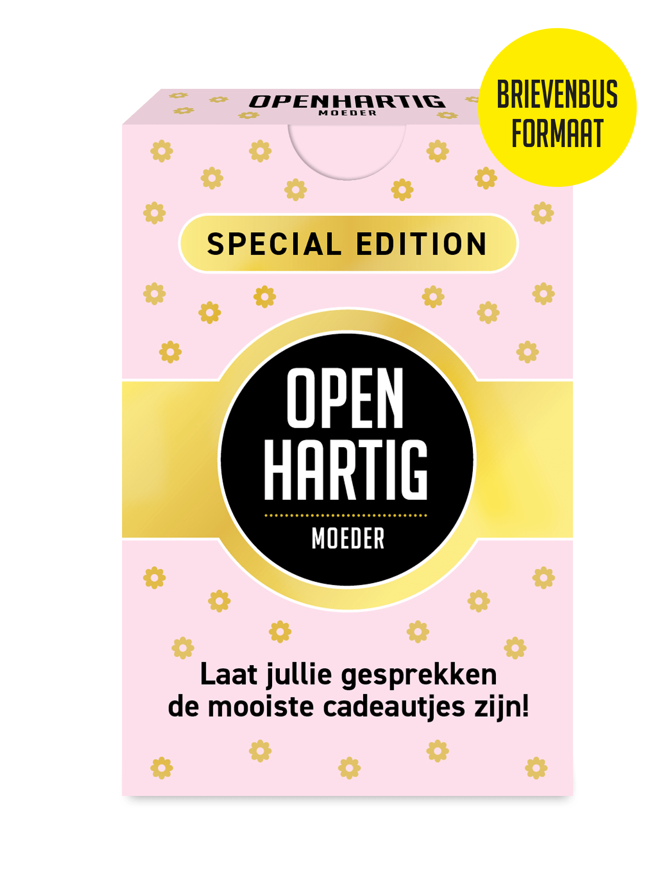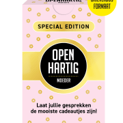 Dat kan met onze special edition Openhartig Moeder! Een klein, compact doosje met meer dan 50 vragen waarmee je nieuwe kanten van jezelf en je moeder kunt leren kennen. Het spel zorgt voor verbinding, herkenning en openhartige gesprekken met elkaar op een plezierige en lichte manier. Het snijdt nieuwe onderwerpen aan en maakt nieuwsgierig naar elkaar. Hierdoor wordt elk gesprek een ontdekkingsreis en een cadeautje.